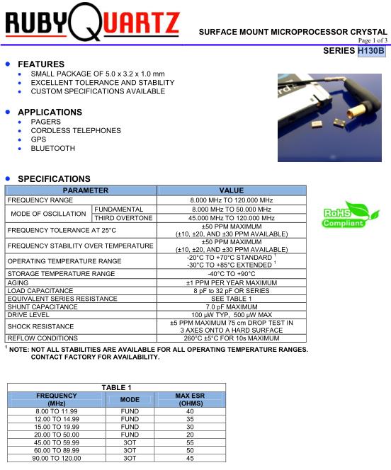 | SHUNT CAPACITANCE | 7.0 pF MAXIMUM | |