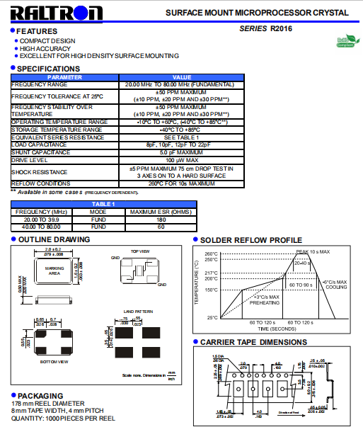 | 頻率容差 | ±50 PPM MAXIMUM (±10 PPM, ±20 PPM AND ±30 PPM**) |