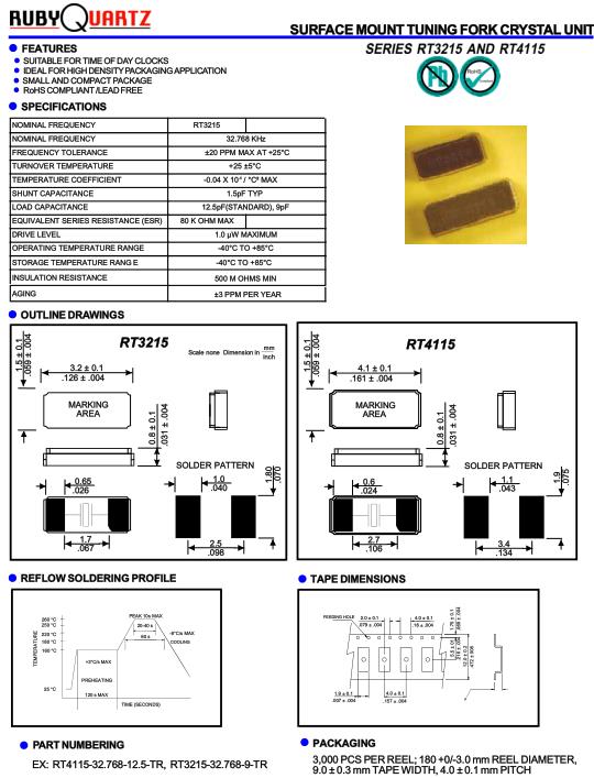 Rubyquartz晶振,RT3215晶振,RT3215-32.768-9-TR晶振