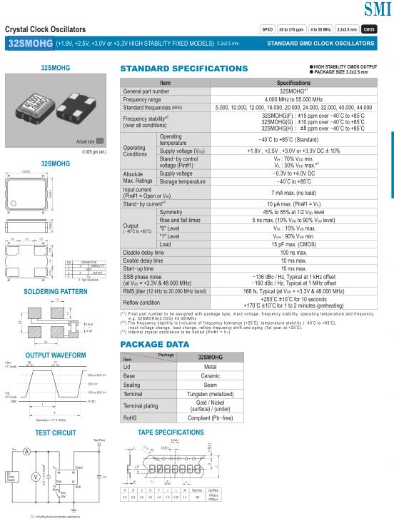 32SMOHG(F) 32SMOHG(G) 32SMOHG(H) : ±15 ppm over -40゜C to +85゜C : ±10 ppm over -40゜C to +85゜C : ±8 ppm over -40゜C to +85゜C |