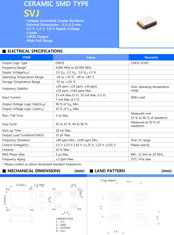作為陶瓷封裝型振蕩器,VCXO,例如在攝像機,數碼相機,ADSL使用打印機作為表面安裝型形成和研發相對于SIZE的小型化.