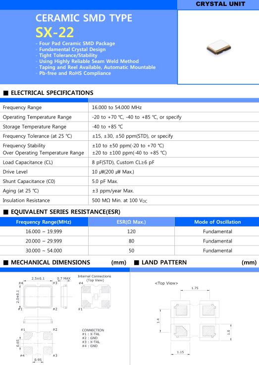 - 產(chǎn)品描述:Sunny晶振,SX-22晶振,SQ8130J624.00000TR晶振,小型貼片石英晶振,外觀尺寸具有薄型表面貼片型石英晶體振蕩器,特別適用于有小型化要求的市場領(lǐng)域,比如智能手機,無線藍牙,平板電腦等電子數(shù)碼產(chǎn)品.晶振本身超小型,薄型,重...