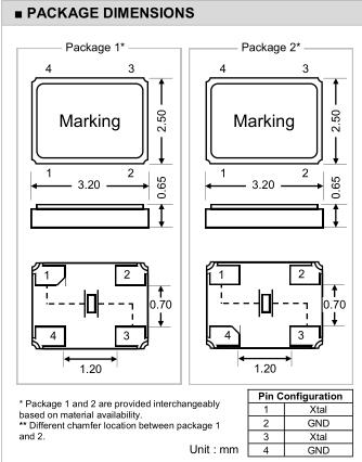 | AGING @ 25°C ± 3°C | ±3.0ppm / 1 st year max. |