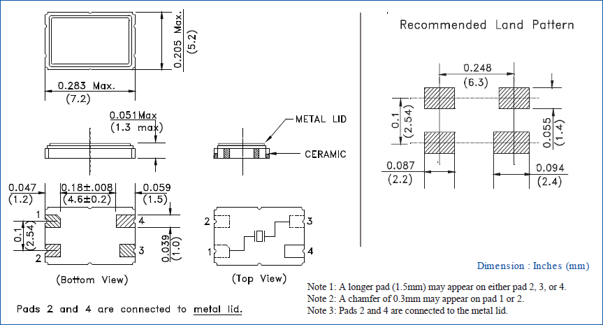 | Type系列: | MHz Crystal | 腳位Termination: | 4-Pad |