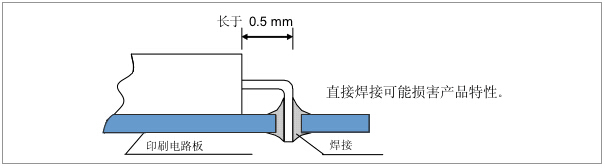 在一個不同擴張系數(shù)電路板(環(huán)氧玻璃)上焊接陶瓷封裝產(chǎn)品時,在溫度長時間重復(fù)變化時可能導(dǎo)致端子焊接部分發(fā)生斷裂,請事先檢查焊接特性.