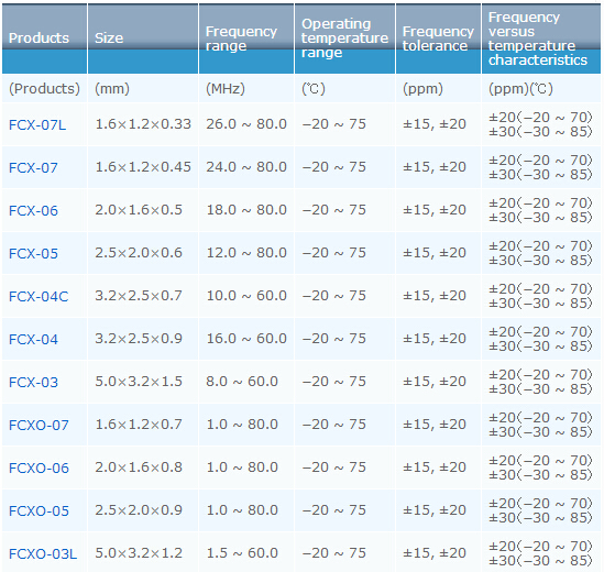 | 頻率偏差 | ±20ppm,±30ppm,±50ppm |