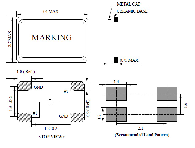 | 頻率穩定度超過工作溫度范圍 | ±10 ~ ±50 ppm (TYP.) |