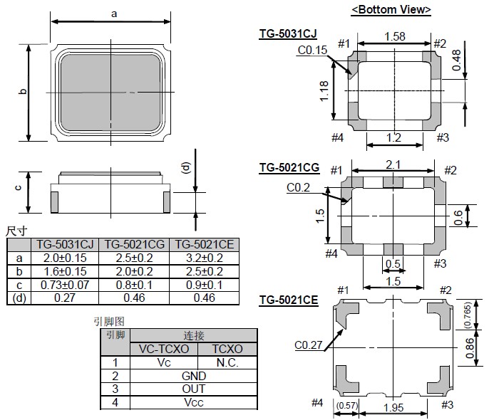 | 晶振參數 | 符號 | TG-5021CG |