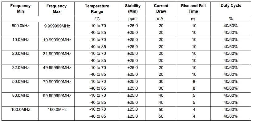 | LFSPXO083826REEL | IQD Crystal | IQXO-951 2520 | XO (Standard) | 25 MHz | CMOS | 1.62V ~ 3.63V |