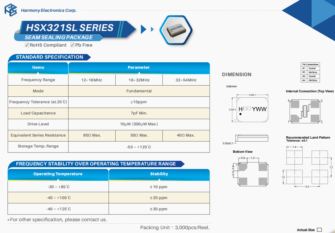 X3S01431ADK1H晶振,低損耗HELE晶振,智能網卡晶振,臺灣HELE晶振公司,加高晶振,SMD晶振,小尺寸晶振,3225晶振,高品質晶振,低損耗晶振,高精度晶振,貼片晶振,石英晶體,無源晶振,四腳晶振,無人機晶振,北斗衛星晶振,電腦主板晶振,智能穿戴設備晶振,醫療設備晶振。特點:微型超薄SMD產品尺寸。高精度、可靠性高,耐熱性好。針對射頻應用、無線模塊設備、RFID應用和其他基于消費者的產品的優化解決方案。