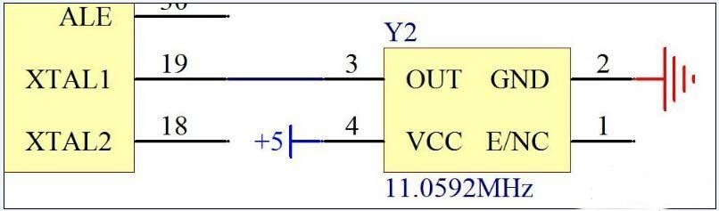 有源晶振通常有4個引腳,VCC,GND,晶振輸出引腳和一個沒有用到的懸空引腳.無源晶振有2個或3個引腳,如果是3個引腳的話,中間引腳是晶振的外殼,使用時要接到GND,兩側的引腳就是晶體的2個引出腳了,這兩個引腳作用是等同的,就像是電阻的2個引腳一樣,沒有正負之分.對于無源晶振,就是用我們的單片機上的兩個晶振引腳接上去即可,而有源晶振,只接到單片機的晶振的輸入引腳上,輸出引腳上不需要接,如圖2和圖3所示.