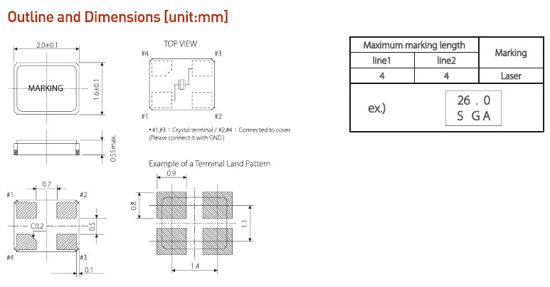 | 頻率老化 | ±15 ×10-6 / year Max. |
